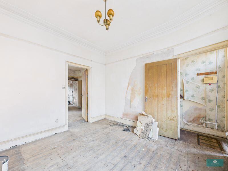 This is a two-bedroom terraced property located in Greenfield, Oldham. The property requires extensive renovation throughout, as evidenced by the images showing damaged walls, ceilings, and floors. The kitchen and bathroom are in poor condition. While the property has a garden, it needs landscaping. The location is desirable, with proximity to schools and transport links. The asking price of £165,000 reflects the condition of the property and offers an opportunity for buyers willing to undertake a significant renovation project. The property is listed with Pattinson Estate Agents.