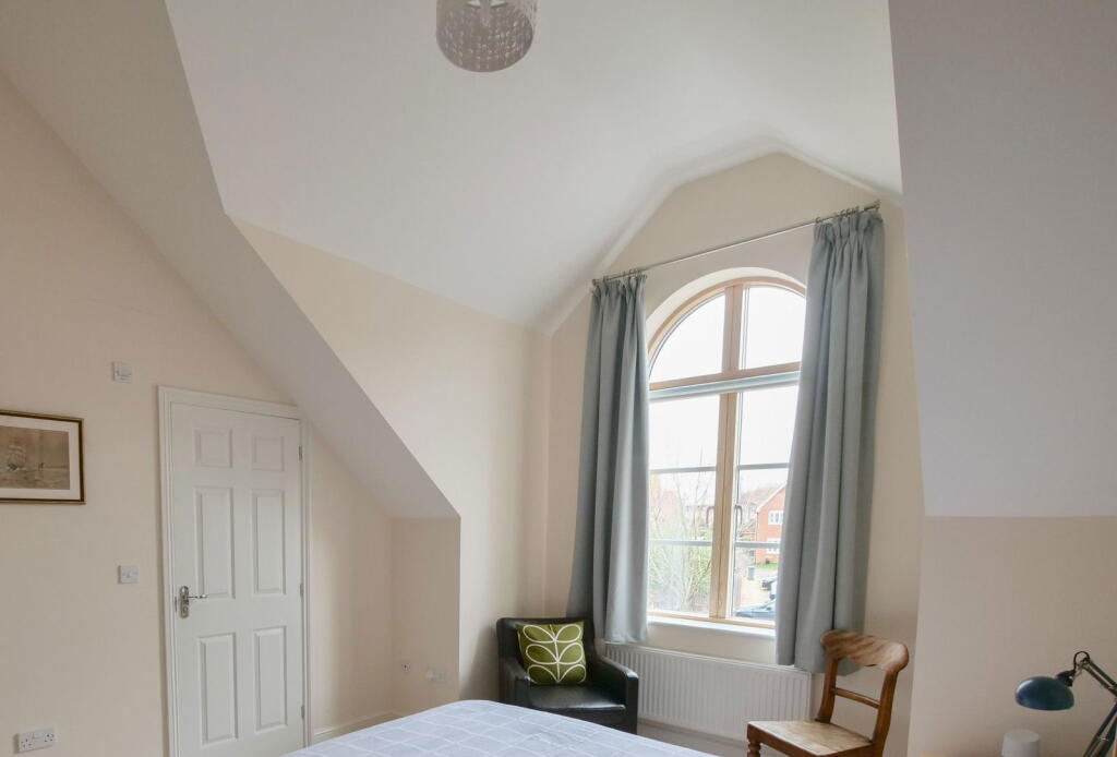 Bailey House is a two-bedroom, two-bathroom semi-detached house located in Framlingham, Suffolk. The property is situated on College Road, close to Framlingham Sir Robert Hitcham’s Church of England Voluntary Aided Primary School and Framlingham College, making it potentially attractive to families. The house is presented in good condition according to the provided photographs, featuring a modern kitchen, updated bathrooms and generally well-maintained living spaces. The interior décor appears contemporary and stylish.