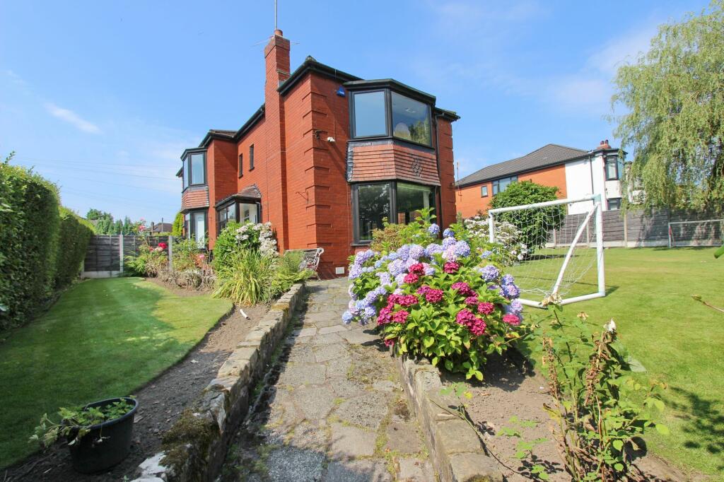 Nestled on a large plot situated on the corner of Bury New Road/Butt Hill Drive, this detached family home exudes timeless elegance and charm.