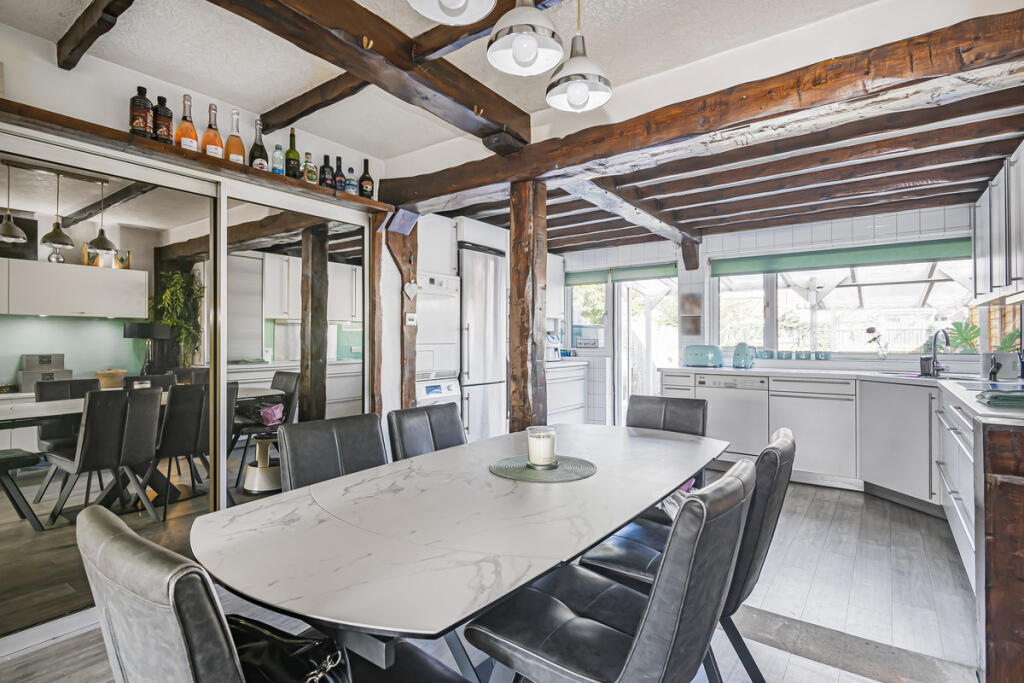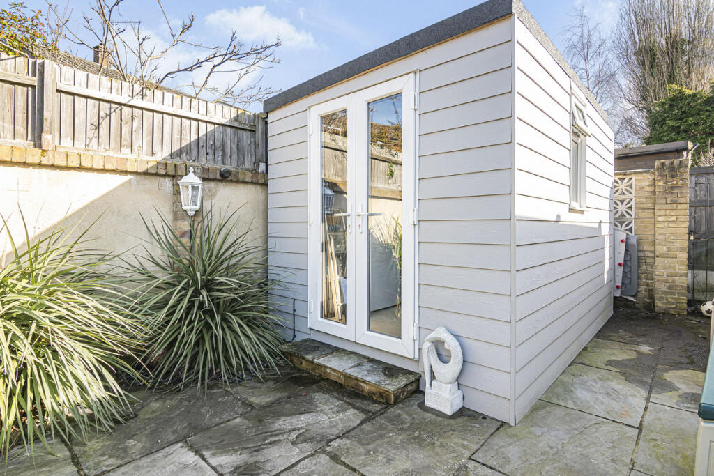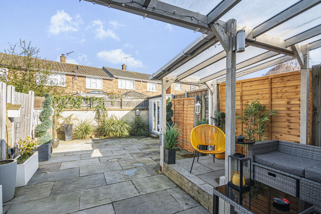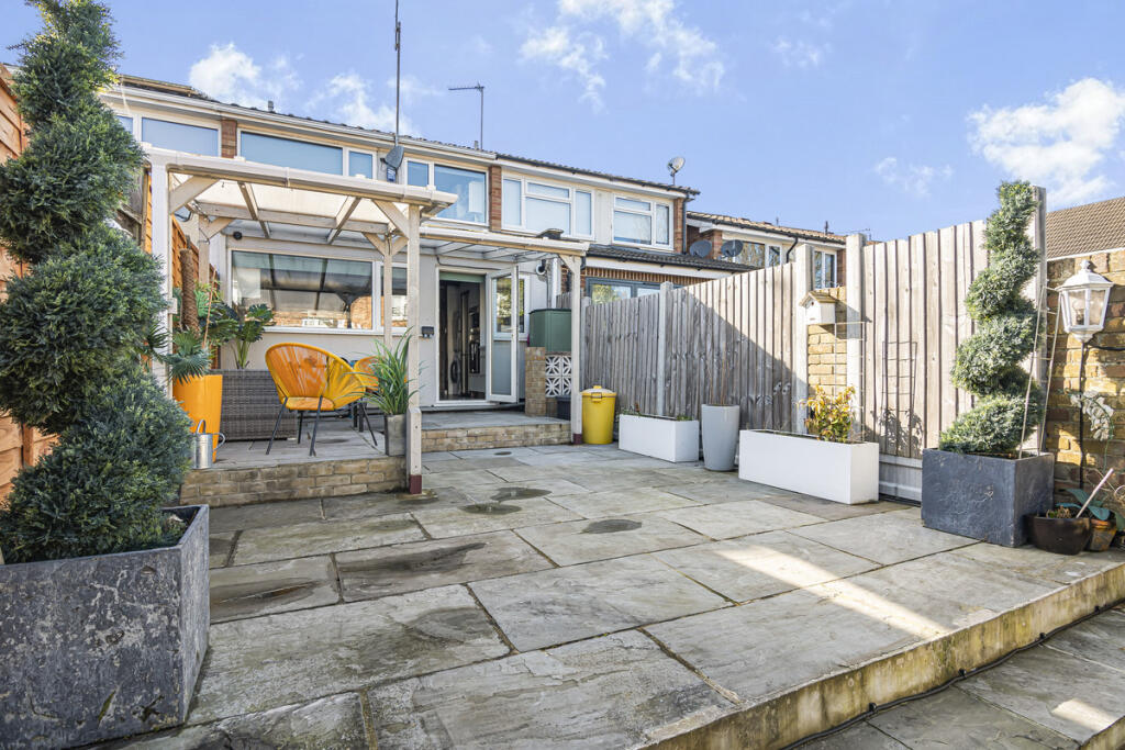 The property is a 3-bedroom, 2-bathroom terraced house located in Romford, Essex. The property benefits from a well-maintained garden with a patio area and a garden shed. The interior is presented in good condition and appears to have undergone some modernisation. The kitchen features exposed wooden beams, adding character. The location is reasonably convenient, with several primary and secondary schools within a short distance. Transportation links may be slightly limited, requiring a short commute to reach TfL Rail stations. The average house price in the area is significantly higher than the list price of this property, suggesting it may represent good value for money, although the lack of square footage data makes a precise assessment challenging. More information on the property’s size would allow for a more detailed price per square foot comparison to the local average. Based on the available information, the property appears to be in good condition, with a well-maintained garden. The list price seems relatively low compared to the average house price in the area, potentially indicating good value. However, the absence of square footage data prevents a definitive conclusion on the price-to-size ratio.