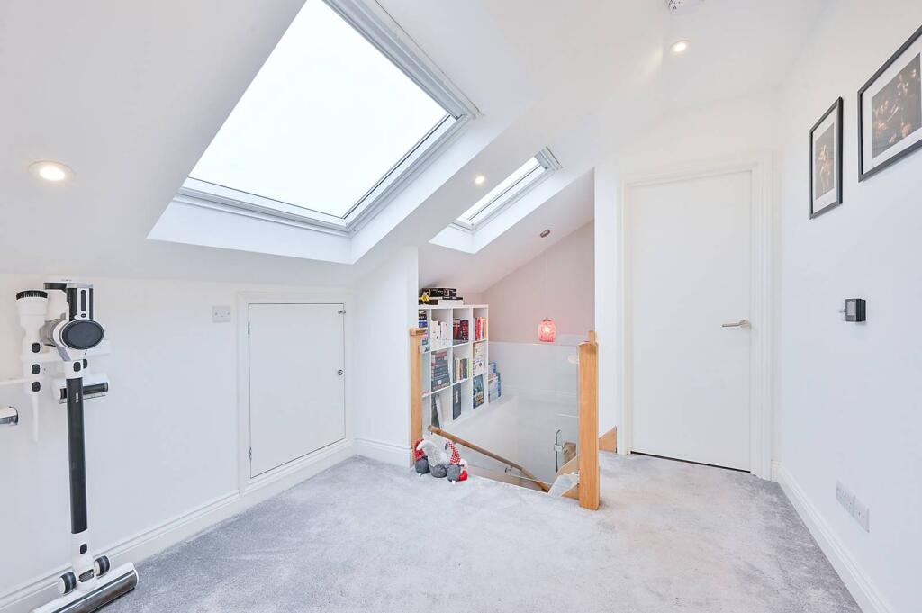 This four-bedroom, two-bathroom flat is located in the Southfield area of Ealing, West London. The property benefits from a modern, recently renovated interior, as shown in the provided images. The open-plan living area and kitchen are bright and spacious, and the bathrooms are contemporary in style. The loft conversion adds extra living space, which is a valuable feature. The property also includes a small balcony overlooking a shared garden. The location is convenient, with several transportation options within a reasonable distance, including South Acton Overground station (0.55km), Gunnersbury Underground station (1.16km) and multiple bus routes. There are also several well-regarded schools nearby, including Belmont Primary School (0.53km) and Ark Priory Primary Academy (0.89km), both rated as Outstanding by Ofsted. The list price of £900,000 is slightly below the average price for the area (£927,115), and given the property’s size (1,334.72 sqft) and modern condition, it appears to be reasonably priced, although further comparative market analysis would be beneficial to confirm this. The lack of private outdoor space may be a consideration for some buyers.