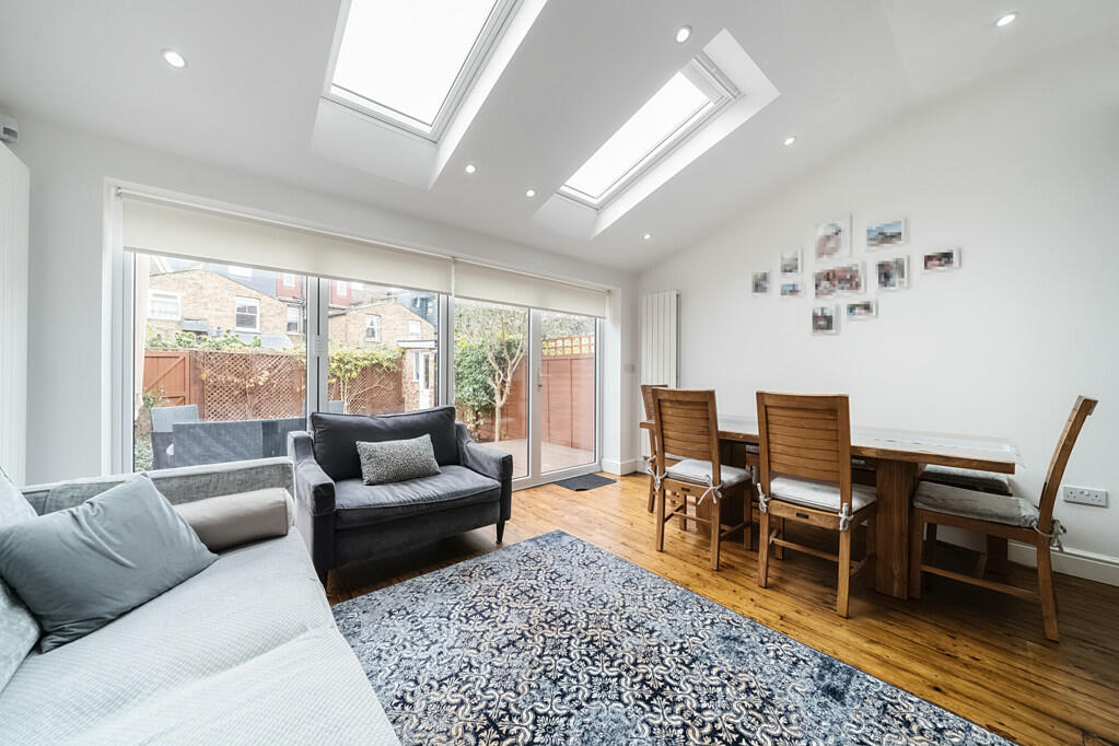This four-bedroom, three-bathroom terraced house located on Loveday Road in Walpole, Ealing, presents a compelling opportunity for buyers seeking a family home in a well-connected and desirable area of West London. The property boasts a modern and updated interior, with high-quality finishes throughout. The images highlight a contemporary kitchen, updated bathrooms, and beautifully renovated living spaces, suggestive of a recent renovation or extension project. The extensive use of natural light creates a bright and airy atmosphere. The garden, while exact dimensions are unavailable, appears to offer good outdoor space, complete with a decked area, and is a significant asset. The proximity to West Ealing station and nearby highly-rated schools further adds to its appeal for families. While the absence of specific data on plot size and a more detailed breakdown of local comparative prices makes precise valuation challenging, the asking price appears to be in line with the expected value for a similar property in this location. Overall, this property is attractively presented, offering modern, spacious family living in a well-regarded area.