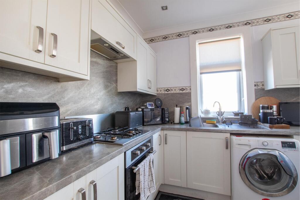The property at 89 Kelvin Street, Largs is a 2-bedroom flat with 1 bathroom, listed at £89,000. The property has a small garden and appears to be in good condition, with a modern kitchen and updated bathroom. The property benefits from being close to Largs train station (0.91 KM). Considering the average price per sqft in the area is £329 and this property is 62.80 sqft, one might expect a price closer to £20,600. However, the list price is significantly higher. This could be due to factors not reflected in the provided data, such as the desirability of the location or unique features of the property. The property also benefits from having a garden, which is a desirable feature for many buyers. The relatively low average price of nearby properties on streets like George Street and Royal Avenue (£84,000 and £60,000 respectively) suggests that the list price of £89,000 might be on the higher end for a similar property in the area. However, without further details on the specifics of comparable properties (e.g., size, condition, features), a definitive conclusion on the price’s reasonableness cannot be made. Based on the images provided, the property appears to be in good condition and well-maintained. There is no evidence to suggest that it is in need of renovation. The garden is relatively small but well-kept.