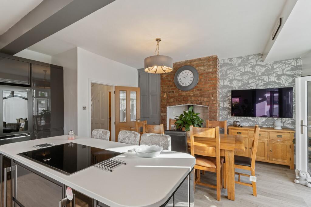 This four-bedroom semi-detached property located on Thelwall New Road in Grappenhall, Warrington, presents a compelling proposition for families seeking a well-located home in a desirable area. The property boasts several attractive features, including a modern, open-plan kitchen/diner which is beautifully updated, a stylishly renovated bathroom, and what appears to be a good-sized garden with a decked patio area. The house also includes a converted loft space which is flexible and could be used as an additional bedroom, playroom or home office. The location in Grappenhall is a key selling point, given the area’s reputation for its high-quality schools and convenient access to Warrington’s amenities. While the provided images showcase attractive interiors and an improved kitchen and bathroom, other areas might benefit from modernization to elevate the overall condition. The absence of precise plot size and square footage data in the surrounding area prevents a truly precise comparison of value to nearby properties. Overall, it is a functional family home in a good area with a fairly priced listing that should attract considerable interest.