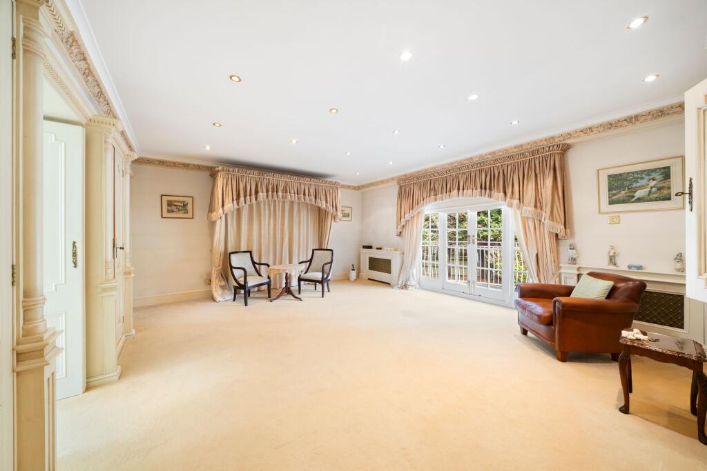 This is a substantial detached property located on Fairmile Lane, a sought-after address in Cobham. The house features five bedrooms and three bathrooms, making it suitable for a large family. While the square footage is not provided, the property appears spacious, with multiple reception rooms and a large kitchen. The property includes a large garden with a pool, a garage, and ample parking. The interior design is somewhat dated and may benefit from modernisation. The property is conveniently located near local schools and transportation links, enhancing its appeal.