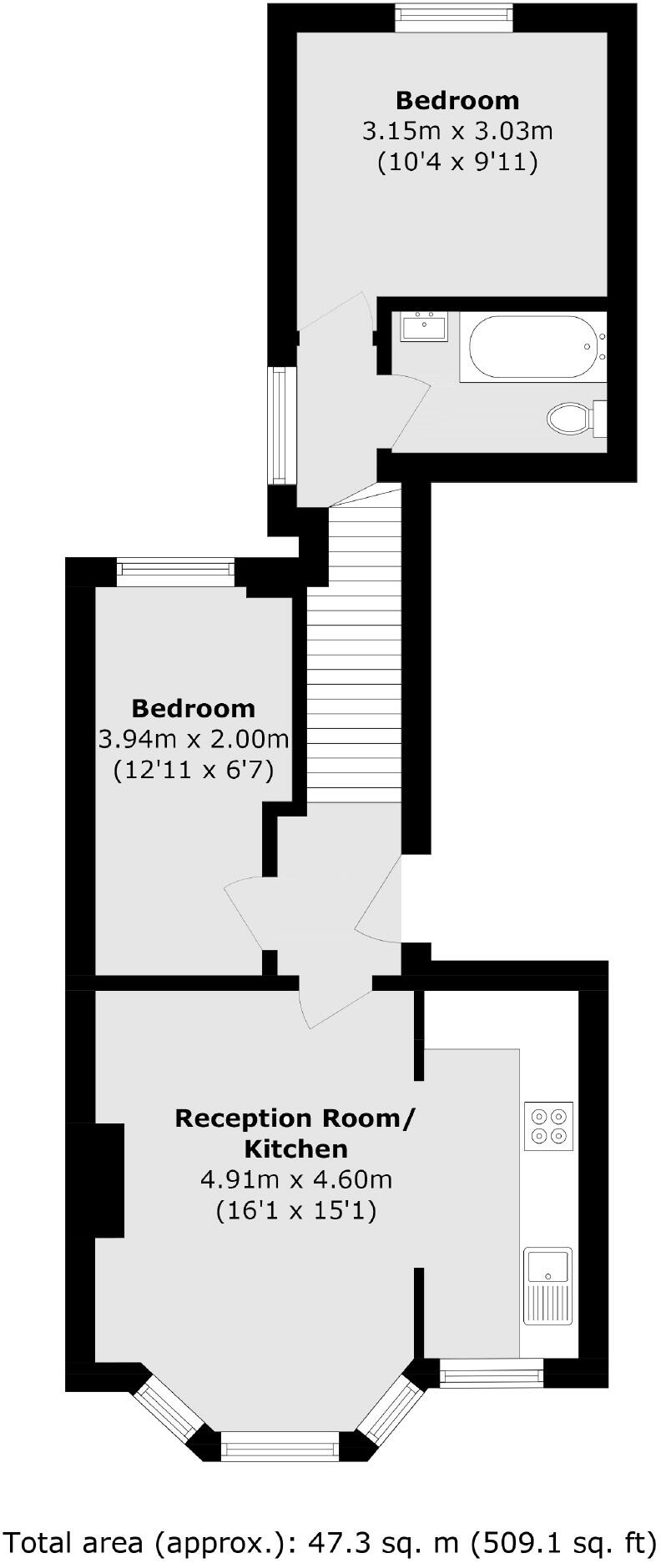 Located within a charming period building and presented in a decorative order throughout, this first floor flat has two bedrooms, a modern bathroom and an open plan living and kitchen area.