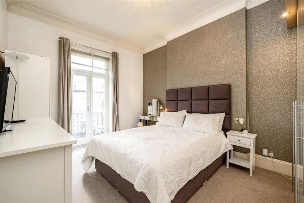 This beautifully presented property is located on the second floor of a sought-after mansion block with convenient lift access. The property comprises a principal bedroom with direct access to a private balcony, a second well-proportioned bedroom, a spacious and inviting living area, a sleek mode...