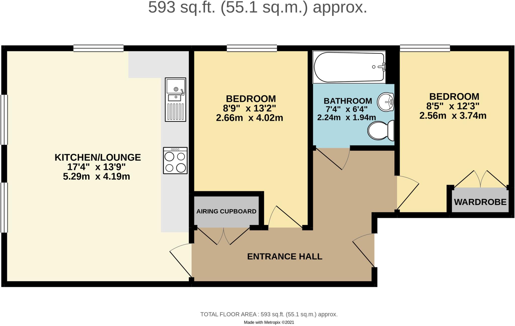 This is a modern two-bedroom apartment in Wokingham. The property is in good condition and benefits from its proximity to local schools and transport links. The property is listed below the average price for the area, making it a good value for money.