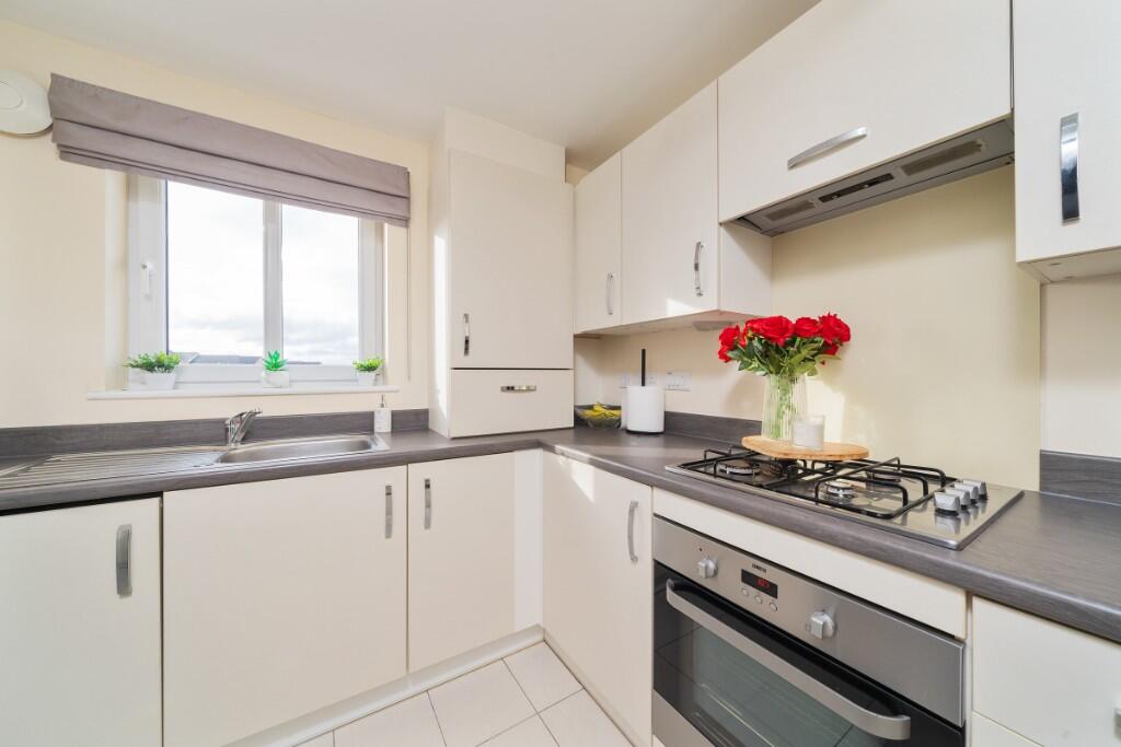 This is a two-bedroom flat located in Cailhead Drive, Cumbernauld North. The property appears to be in good condition, with modern interiors. It benefits from its proximity to Croy train station. The flat offers communal outdoor spaces. The price seems aligned with similar properties in the immediate vicinity. The property is likely to appeal to first-time buyers, small families, or commuters seeking convenient access to transportation links.