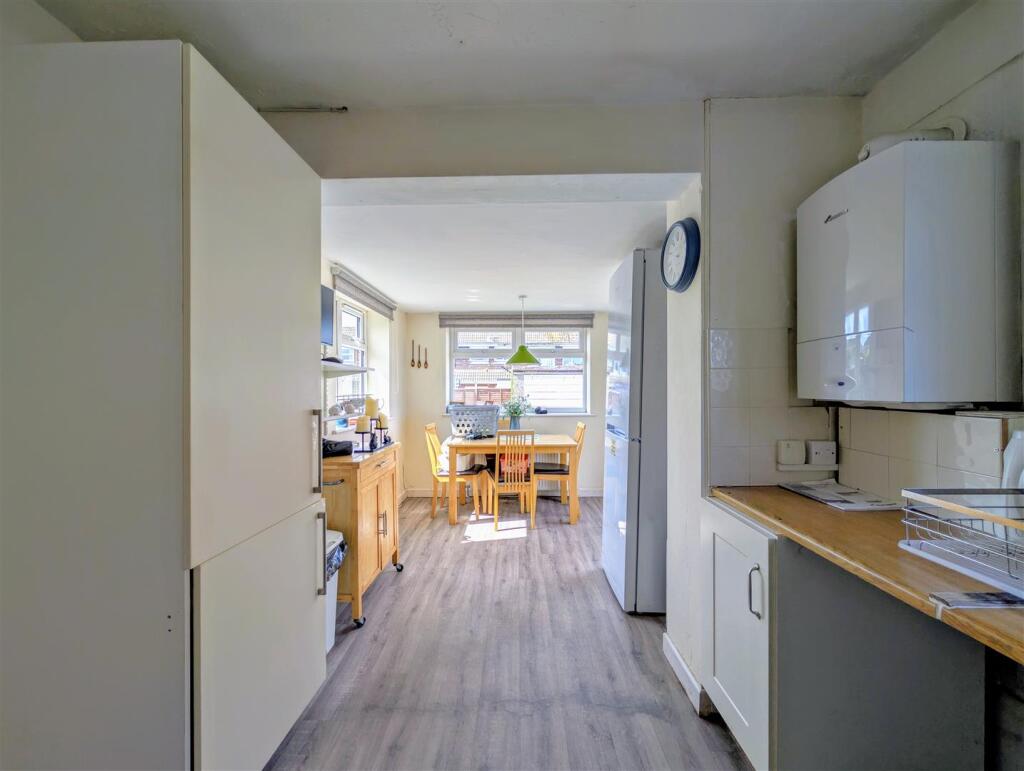 CASH BUYERS ONLY (leased solar panels) CHAIN FREE EXTENDED two bedroom semi detached bungalow with a LARGE DETACHED GARAGE that would benefit from modernisation situated in a convenient position. Accommodation comprises hallway, lounge with French doors onto the garden, EXTENDED KITCHEN/...