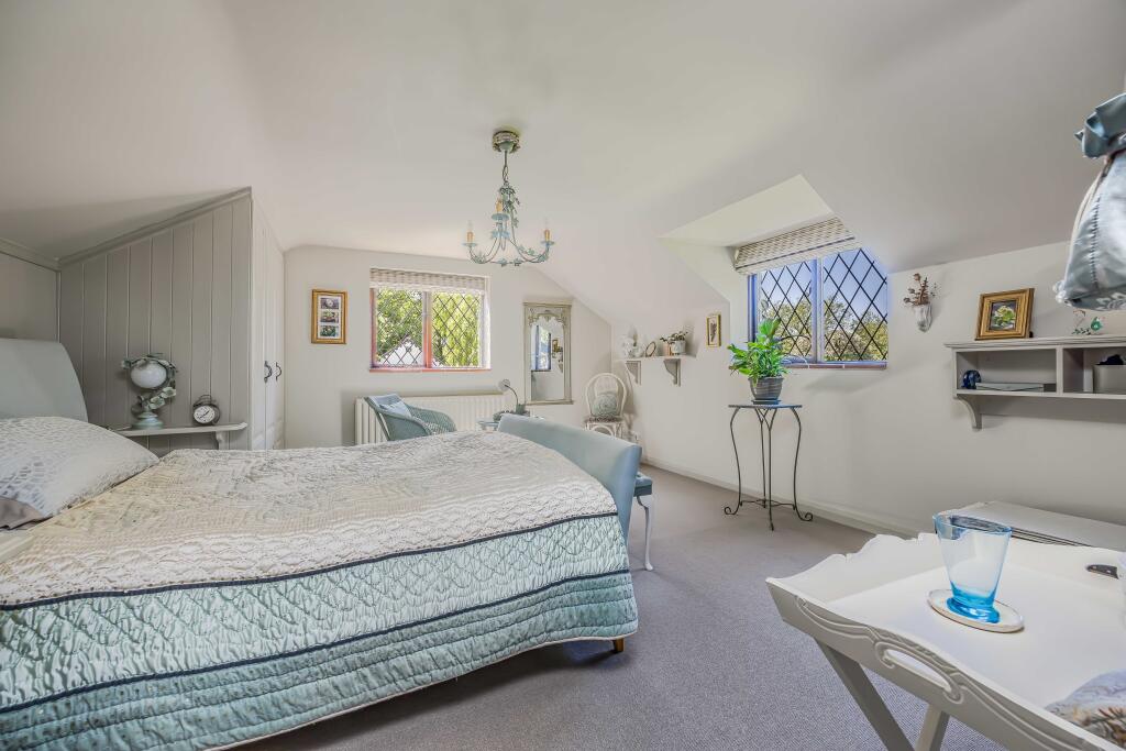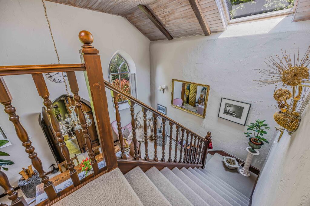 A charming detached house of immense character formerly a Chapel, cleverly converted providing spacious accommodation, approached from a gated driveway, leading to a double garage and detached studio with enchanting gardens, within easy reach of the coast, set in grounds of approximately 0.3 acres.