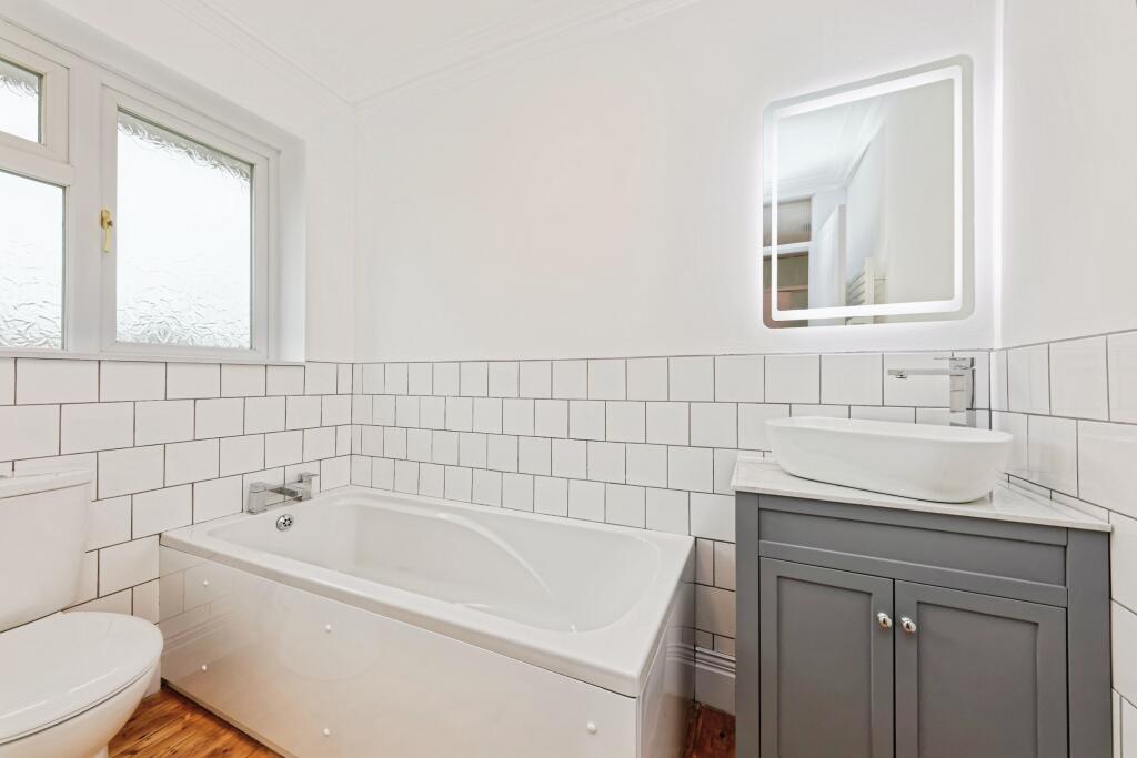 This is a 3-bedroom end-of-terrace house on Livingstone Road, Broadstairs. The property benefits from 2 bathrooms, a modern kitchen, and a garden. The property is located close to local schools and transportation links. The interior has been modernised. The property is listed at £400,000, which is in line with the average property price for the street. The average price per square foot in the area is £629, while this property is listed at approximately £348 per square foot. This represents fair value for money.