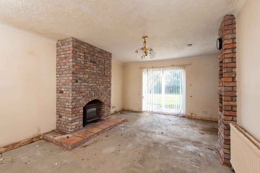 This is a detached bungalow in Bicker, near Boston, Lincolnshire, listed for £175,000. The property requires extensive renovation throughout, as evidenced by the interior photos. Despite its condition, the bungalow offers a spacious layout of 1,011.81 sqft and benefits from front and rear gardens. Its location provides access to local schools and transportation, although it is a more rural setting. The price per square foot is considerably lower than the area average, reflecting the renovation work needed. This property presents an opportunity for buyers willing to undertake a comprehensive refurbishment project.