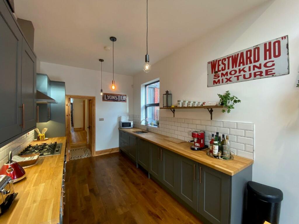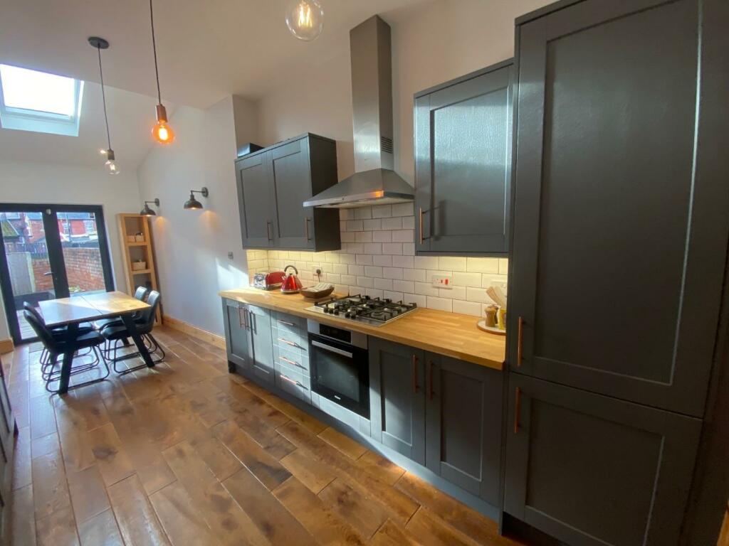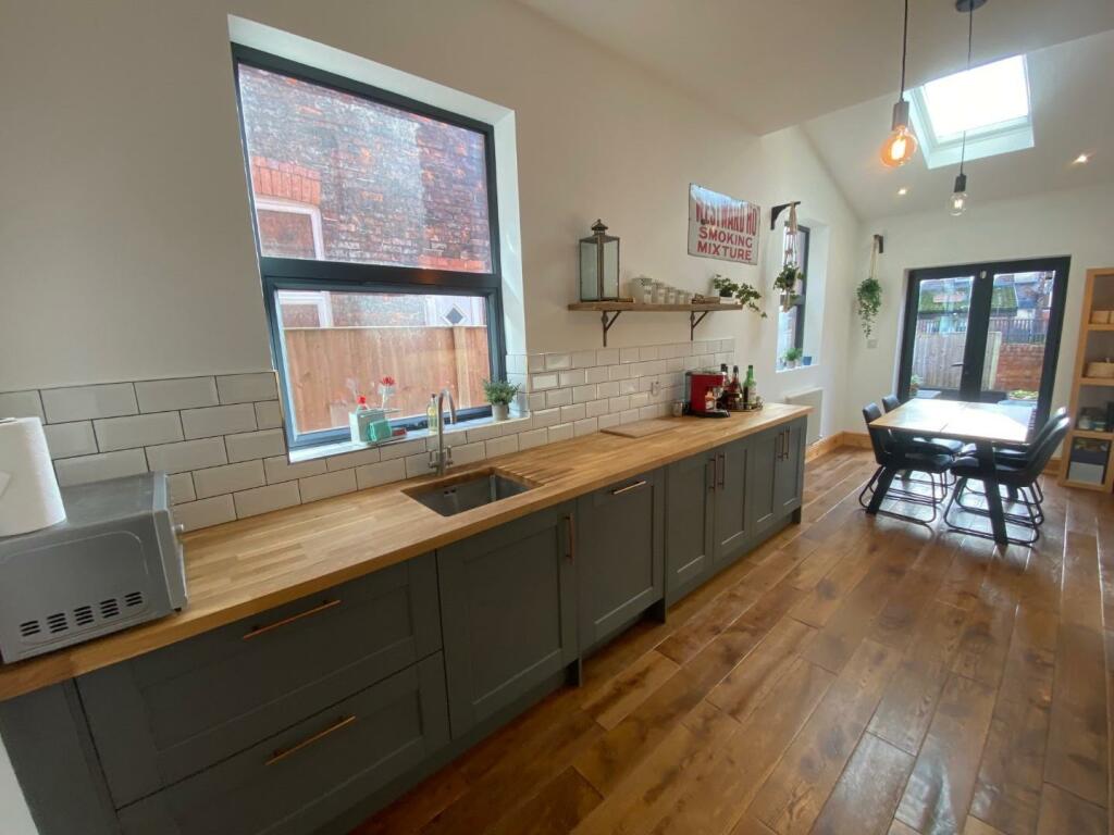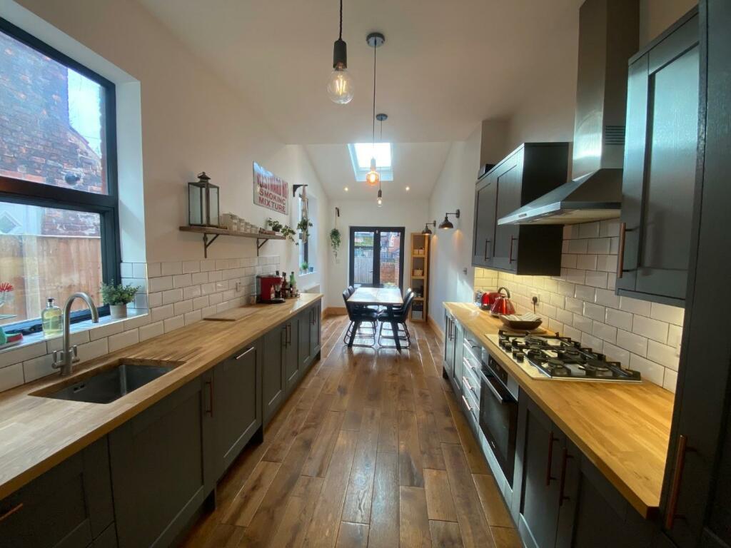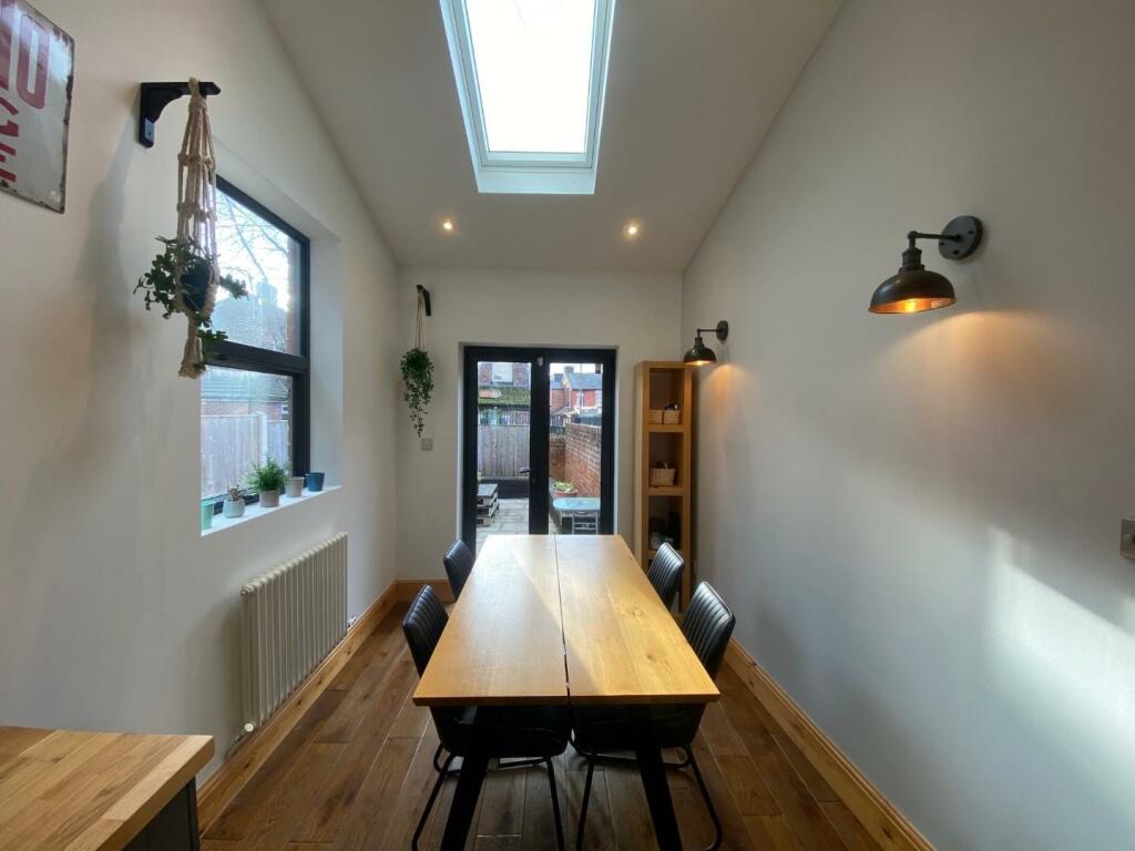 A BEAUTIFULLY PRESENTED, THREE / FOUR DOUBLE BEDROOM, TERRACED PROPERTY, WITH OPEN VIEWS TO THE FRONT OVERLOOKING PLATT FIELDS PARK. 1261 sq ft. The living space is arranged with a great blend of features including stripped wood flooring, and feature fireplaces. The impressive 22ft dining kitch...