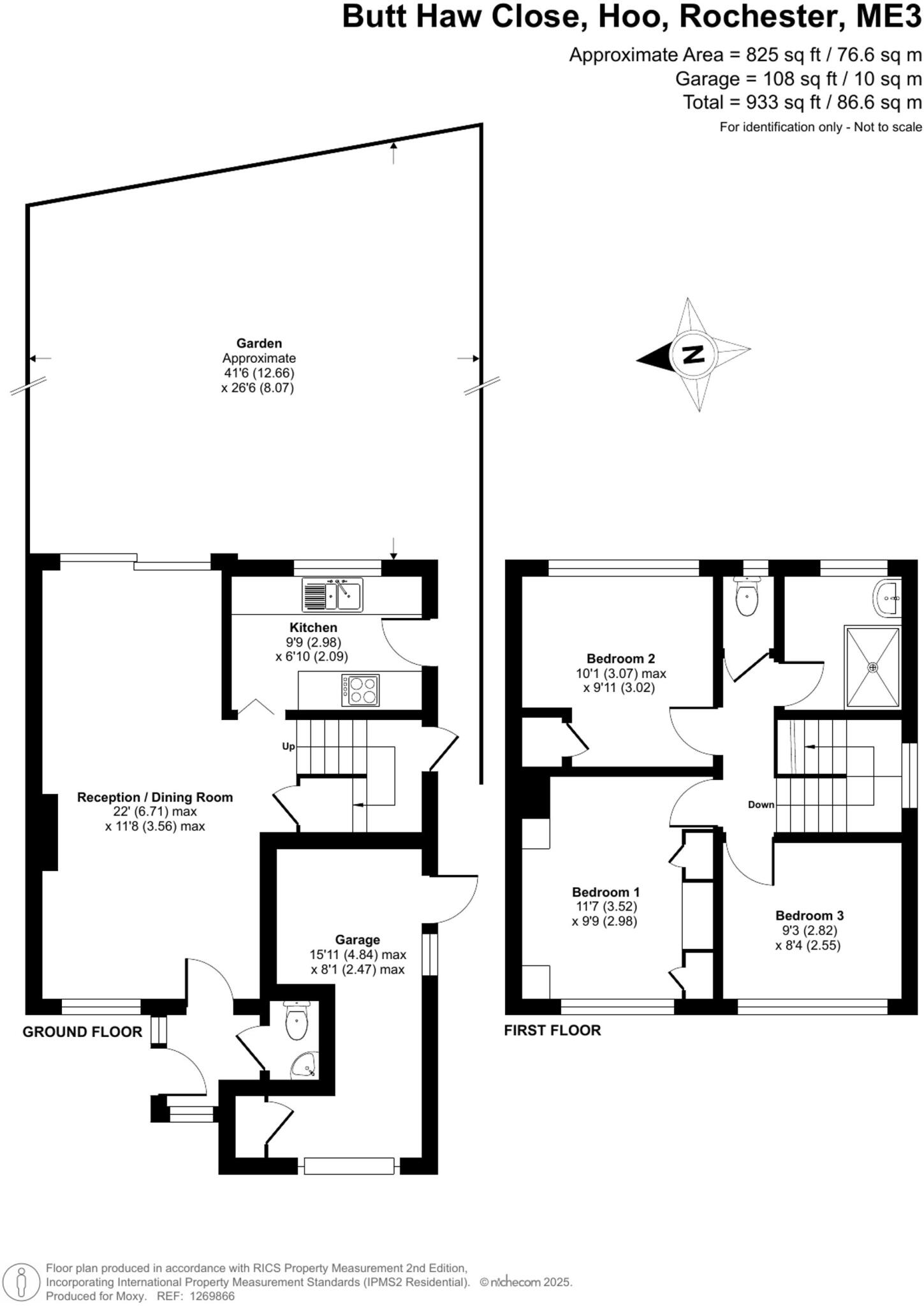 The property is a 3-bedroom semi-detached house located in Hoo, Kent, with a list price of £325,000. The property has a plot size of 933 sqft and the internal area is 1,802.85 sqft.