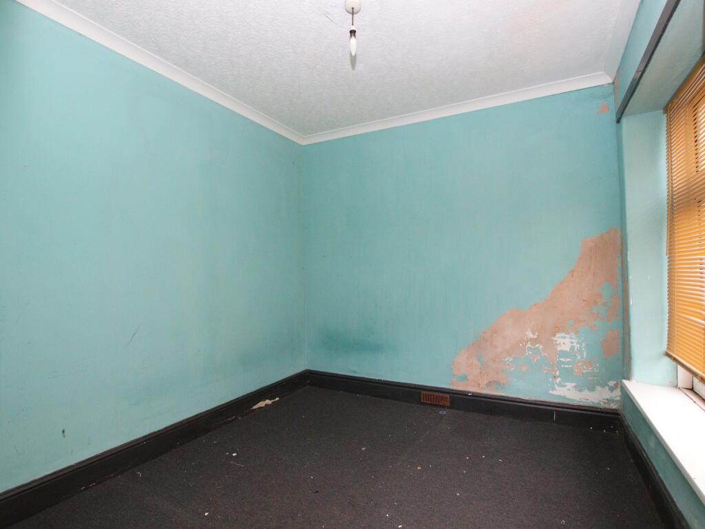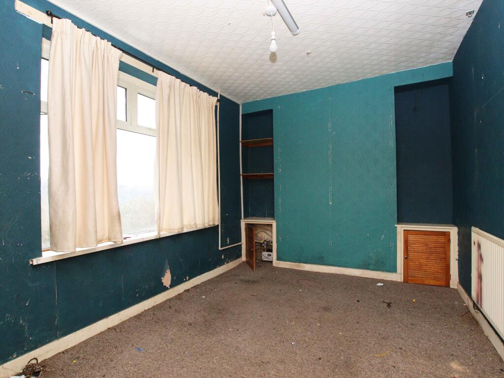 This three-bedroom property in Mountain Ash, CF45 3TJ, presents a unique opportunity for buyers with renovation experience or investors willing to undertake a substantial refurbishment project. The property itself is in a state of disrepair, with visible damage to walls and floors and very dated fixtures and fittings. The kitchen and bathroom require complete modernization, and the overall condition suggests that considerable expenditure will be necessary to bring the property up to a habitable standard.