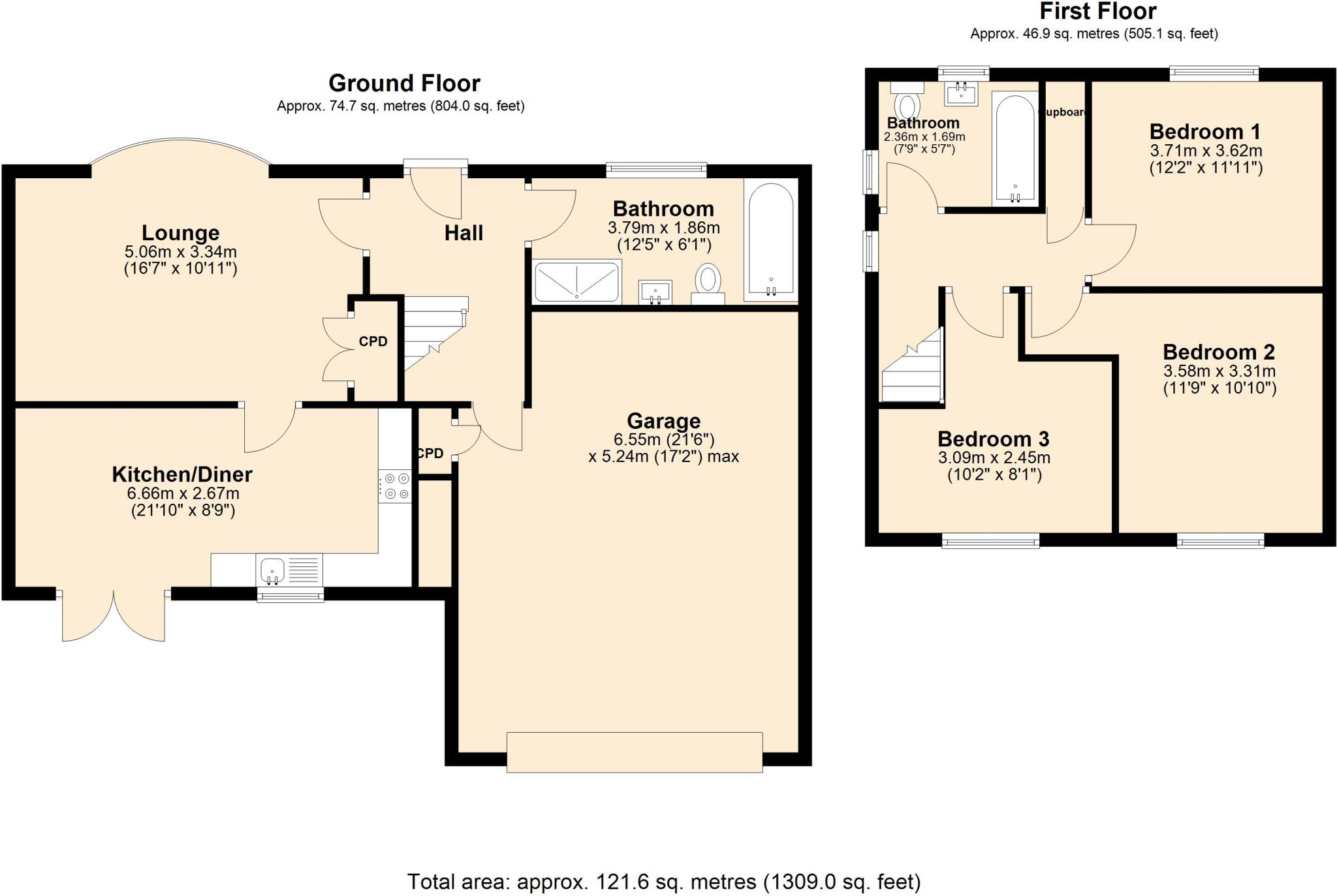 Spacious and extended family home boasts three bedrooms and two bathrooms, one of which is conveniently located on the ground floor. Driveway and large garage.