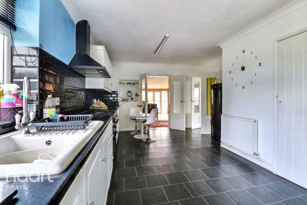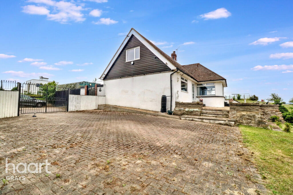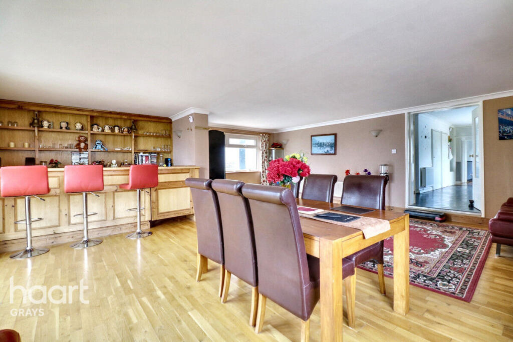 Spacious four bedroom chalet bungalow set on 2 acres of land with outdoor swimming pool, indoor bar, and driveway. Offering endless potential, this property benefits from easy access to the A13 and M25. Ideal for families or investors seeking a versatile home with great transport links