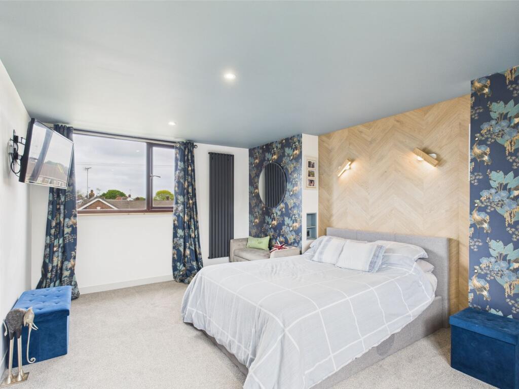 Stylish detached dormer bungalow in Barton upon Humber with open-plan living, 2 beds, versatile lodge, converted garage, private garden, and driveway. Modern, spacious, and full of potential!