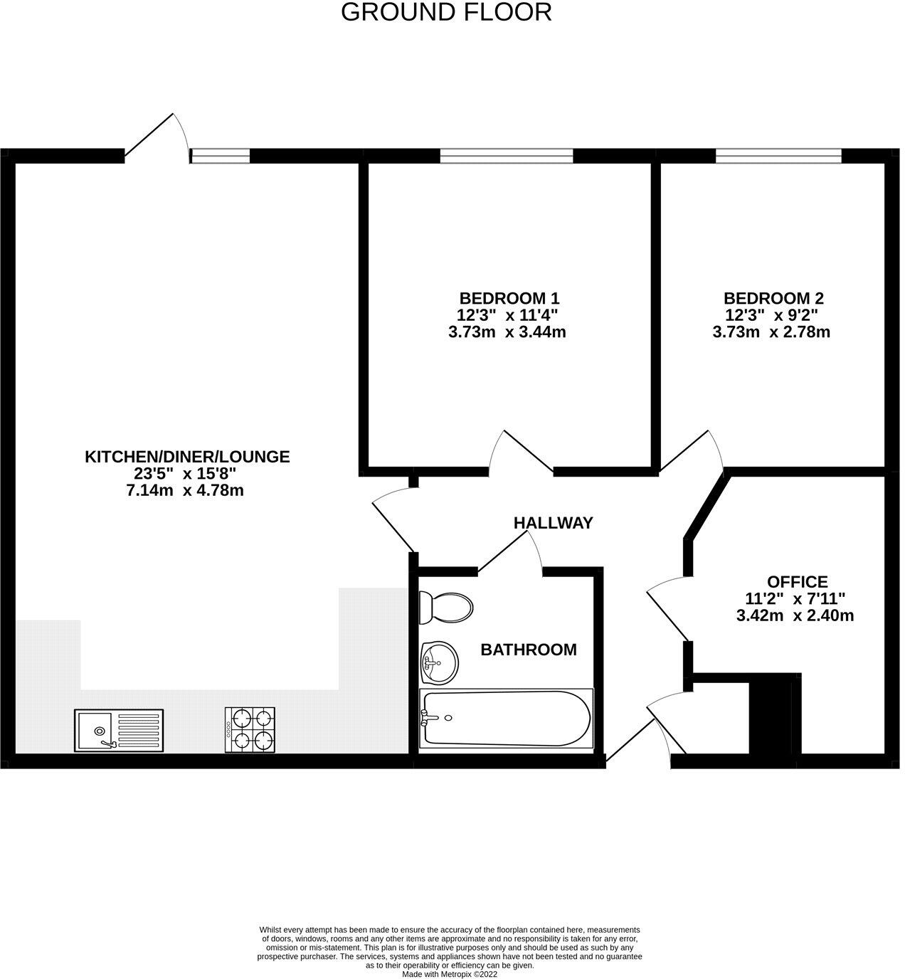 This is a two-bedroom flat in Farnborough, Hampshire. The property is in good condition and benefits from its proximity to local amenities, including transportation links and schools. The flat is competitively priced compared to the average property price in the area. While it doesn’t have a private garden, there are communal garden spaces available.