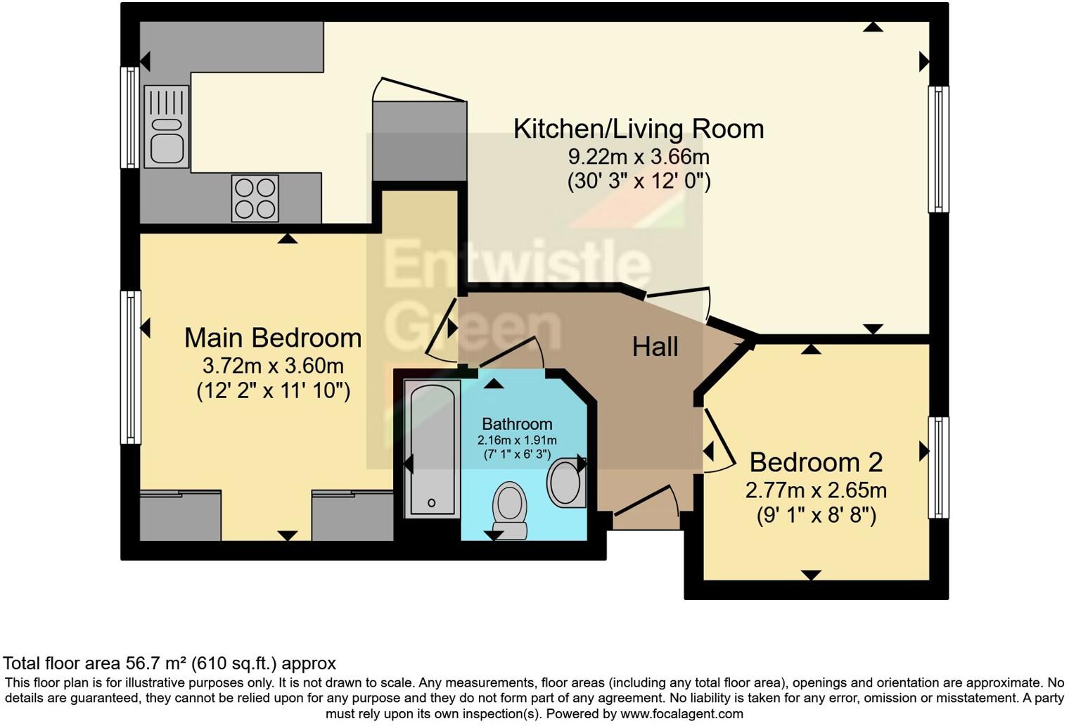 This is a two-bedroom flat located in Sunningdale Court, Little Lever, Bolton. The property appears to be in good condition and offers 610.31 sqft of living space. The location is reasonably convenient, with schools and transportation links nearby. The asking price of £125,000 seems fair considering the property’s condition and location. The flat would be ideal for a small family or a couple. There is off road parking.