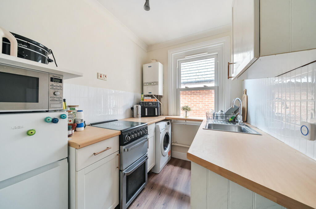 A characterful one bedroom apartment with its own private rear garden in central Mytchett. Having been modernised by the current owner, the property has a spectacular bathroom, plenty of cupboards and worktop space in the kitchen, and new sash windows throughout. The original fireplace in the ...
