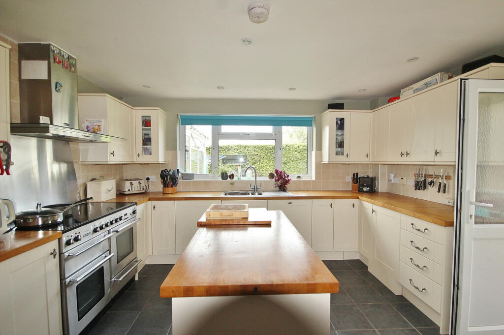 This is a detached bungalow located in a rural setting in the Nadder Valley, Wiltshire. The property has four bedrooms and two bathrooms, with a large garden and a number of outbuildings. The property appears to be in good condition, with a modern kitchen and bathrooms. The property is listed for £865,000, which is below the average price for the area.