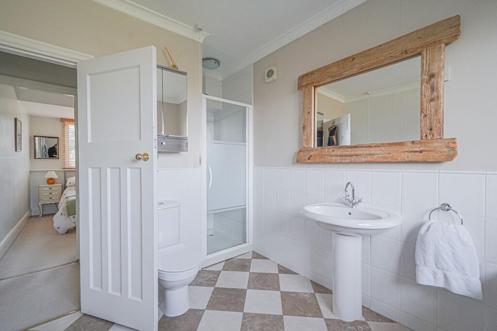 Based on the provided images, the property appears to be in good condition. The interior is well-maintained and presented, with modern fixtures and fittings in the kitchen and bathrooms. There is evidence of some traditional features, suggesting a property that has been updated while retaining some of its original character. The exterior also presents well, with a neat garden and driveway.