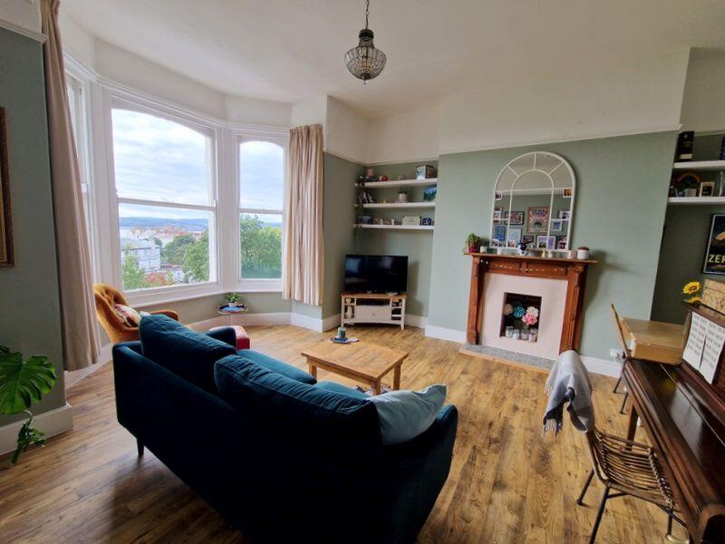 This is a two-bedroom flat located on The Beacon in Exmouth. The property is in a desirable location with views and is within walking distance of the town center. The flat appears to be in generally good condition, with a modern kitchen and bathroom. However, some areas may benefit from updating. The property has no garden. The list price of £300,000 is slightly below the average price for the area, making it a potentially good value.