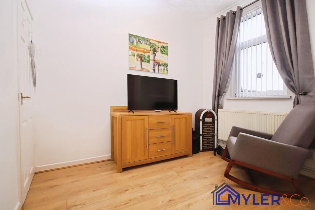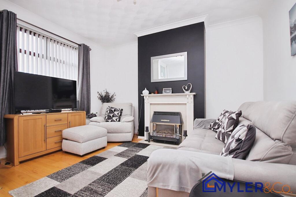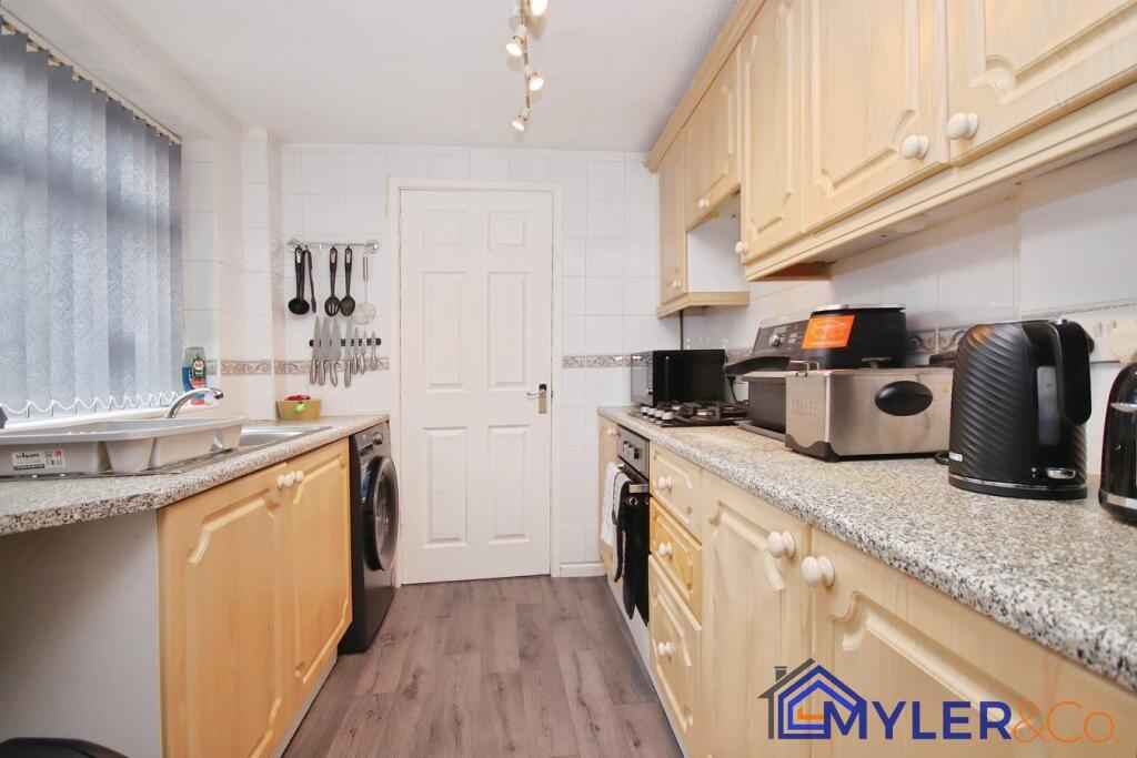 This is a two-bedroom terraced property located on Moorfield Road in Widnes. The property is listed with Myler Estates. The house has one bathroom. The interior appears to have been modernised to some extent, particularly in the kitchen and bathroom. The property includes a small rear yard. Nearby amenities include Moorfield Primary School. The nearest train station is Widnes, which is 2.51 KM away. The listing price is £135,000.