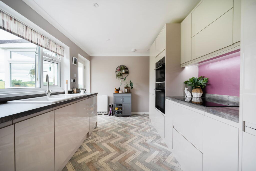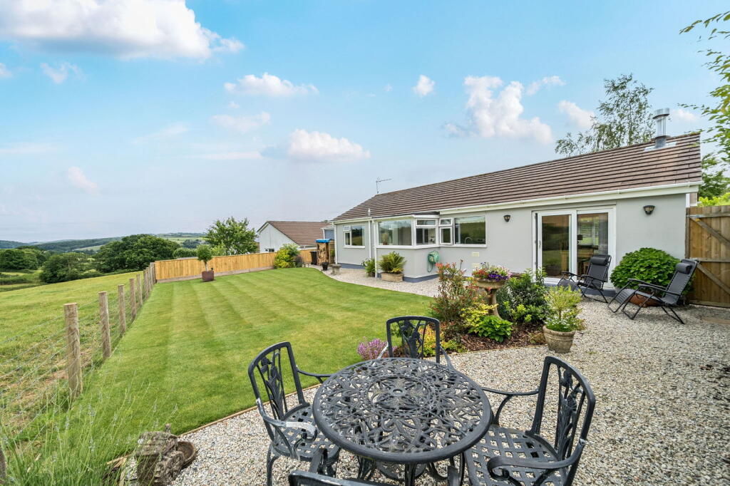 An extensively updated detached bungalow with stunning rural views on the edge of a peaceful village. 3 bedrooms, modern kitchen, lounge/dining room, bathroom & cloakroom. Attached garage & level landscaped gardens. EPC D & Council Tax D.