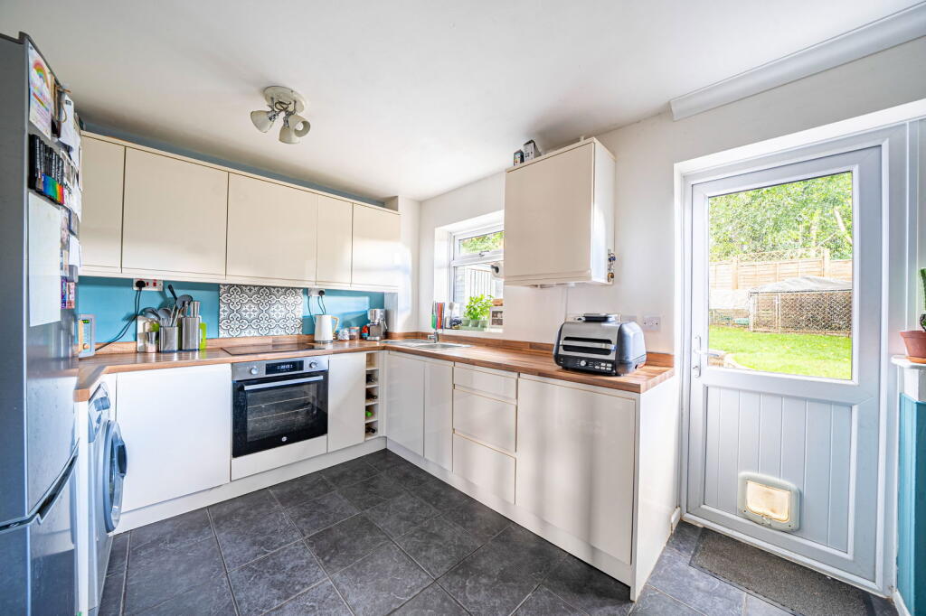 This is a three-bedroom semi-detached house in Whitchurch, Hampshire. The property benefits from a modern kitchen and bathroom, and a decent-sized garden. While generally well-maintained, some areas could use cosmetic updates. It is located close to schools and transportation links. The asking price of £365,000 appears reasonable given the location and condition of the property.