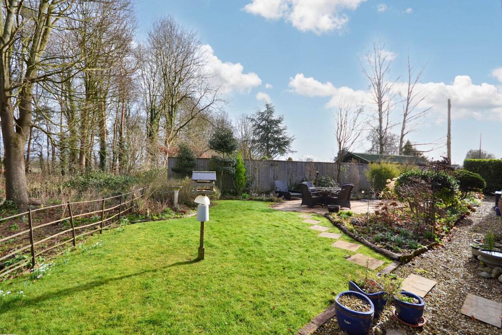 An individually built four double bedroom detached family home located in this highly sought after village, offered for sale with no onward chain. Enjoying three reception room, kitchen/breakfast room, master bedroom with en suite, attached double garage and mature gardens to the front and rear