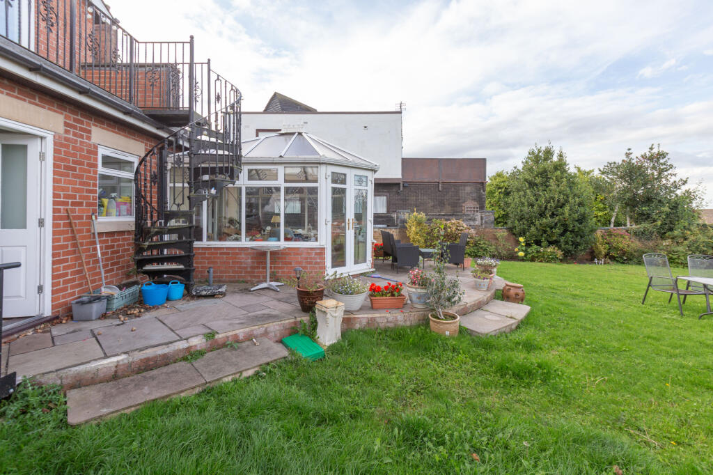 Detached house on Dowbridge, Kirkham with a spacious layout, large rear garden, balcony with countryside views, and unique spiral staircase. Features include modern kitchen, conservatory, ensuite bedroom, utility, garage, and excellent access to Kirkham’s shops, schools, and transport links.