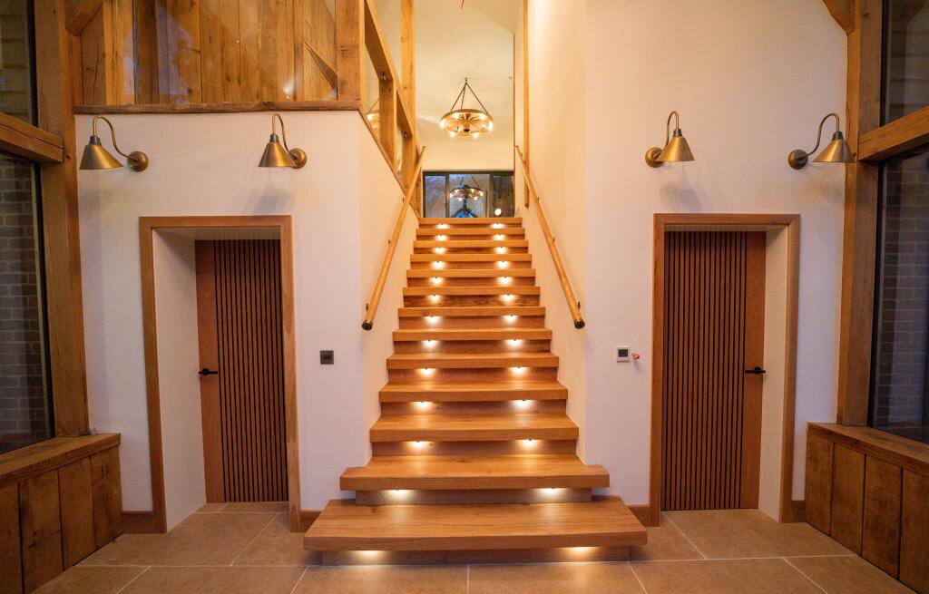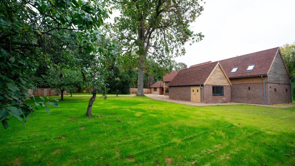 A striking and substantial (7644 sqft) family home close to good schools and your mooring on The River Thames Creek End is a substantial family house hidden away offering a blend of modern luxury and rustic charm. The property features sweeping gabled roofs and expansive windows that fill the sp...