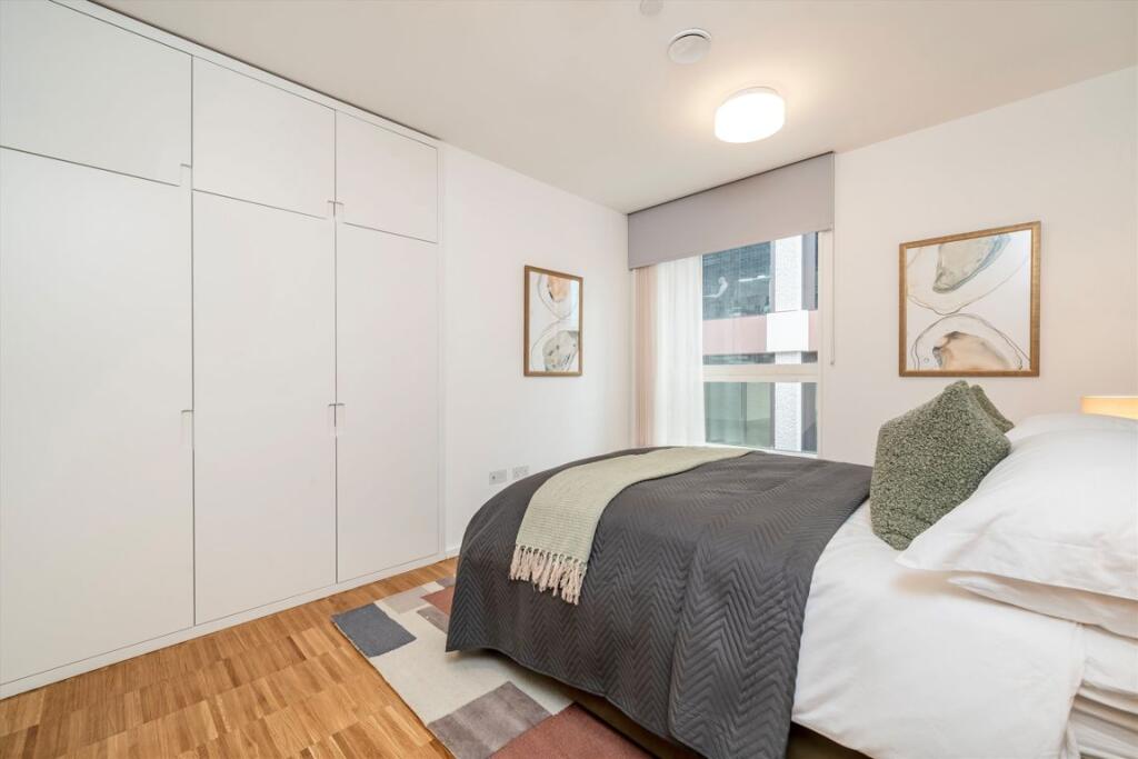 An impressive newly built two double bedroom property with a large balcony in this brand new development close to Kings Cross and Camden. The property offers two spacious bedrooms, two bathrooms, sizable entertaining space, separate fully equipped kitchen and floor to ceiling windows in each room.