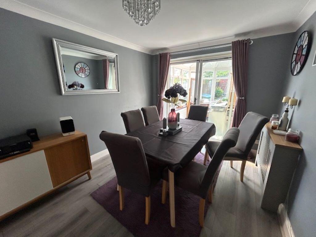 Spacious 4-bed detached home with conservatory, en suite, converted garage, and off-street parking. Features lounge, dining room, modern kitchen, cloakroom, family bathroom, and private rear garden. Ideal for families seeking flexible living.