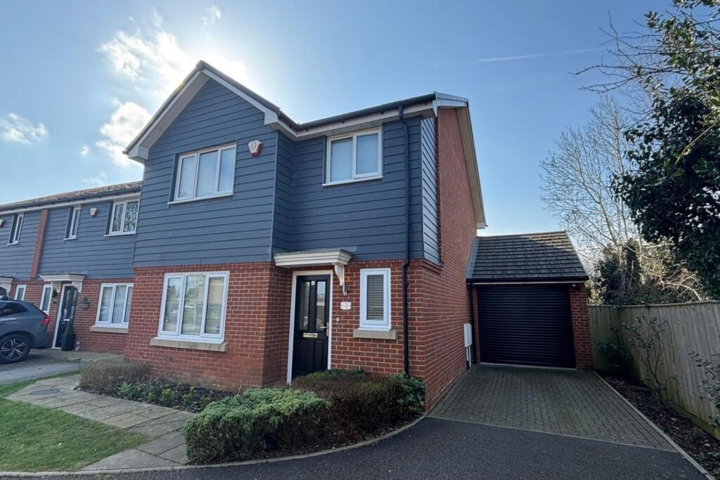 A recently built detached residence situated within a quiet cul-de-sac in the heart of the leafy Historic Thorpe Village. The well-presented accommodation comprises entrance hallway, downstairs WC, living room.19ft kitchen/dining room, attached garage/office, three double bedrooms, en-su...