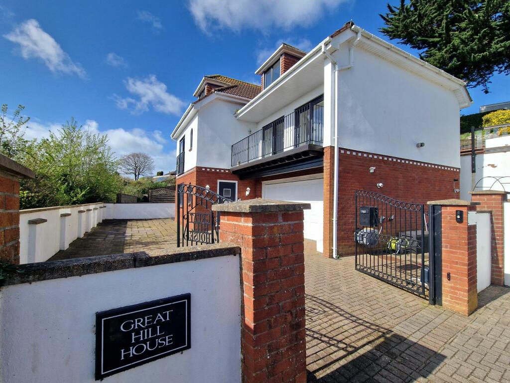 Great Hill House is a FINE DETACHED RESIDENCE set at the head of a cul-de-sac behind electric gates taking full advantage of its elevated location on the southern slope of Great Hill with panoramic views over Torquay toward the sea at Tor Bay.