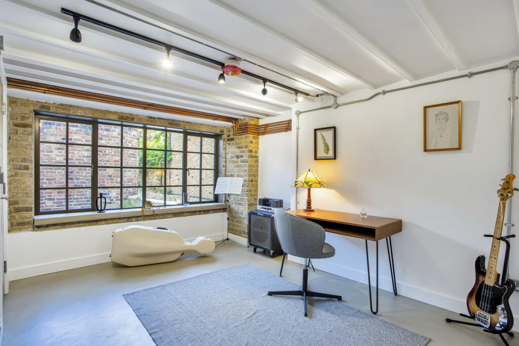 An exceptional three bedroom freehold gated mews house with south facing private roof terrace, set off a sought-after residential London Fields turning, Parkholme Road