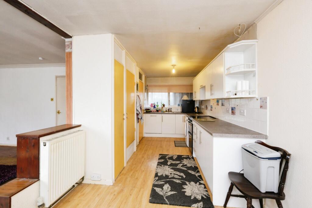 The property is an end of terrace house with three bedrooms and one bathroom. It has a plot size of 1,060.25 sqft and is 954.44 sqft in size. The list price is £375,000. The average price for properties in the area is £416,946, with an average price per sqft of £441. The property is slightly below average in terms of price, but this needs to be considered in light of its condition. Based on the provided images, the property appears to be in need of some modernisation and updating. The kitchen and bathrooms are dated and could benefit from refurbishment. Several rooms show worn carpets and outdated wallpaper. While structurally sound, the property would require significant work to bring it up to a modern standard. The garden is relatively small but does provide some outdoor space. The location of the property is reasonably convenient, with several schools and transportation links within a reasonable distance. However, the quality of the local schools and the specific transportation links would need further investigation. Given the property’s condition, the relatively small plot size, and the average prices in the area, the asking price of £375,000 may be slightly high. However, the location and the potential for increasing the value of the property through modernisation should be taken into consideration.