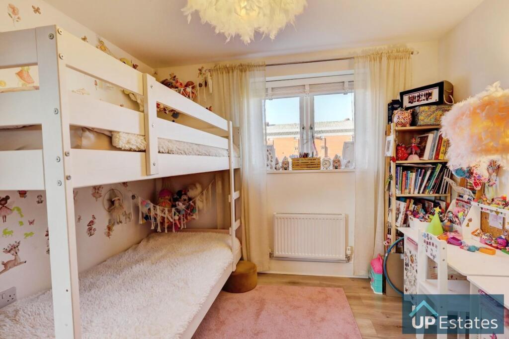 This is a two-bedroom apartment located on Edison Drive in Rugby. It is listed by Up Estates. The property appears to be in good condition, with modern interiors. While it has access to a communal garden, it doesn’t have a private garden. The location is convenient, with nearby schools and transportation. The asking price of £180,000 seems reasonable, especially considering the average property prices in the area.