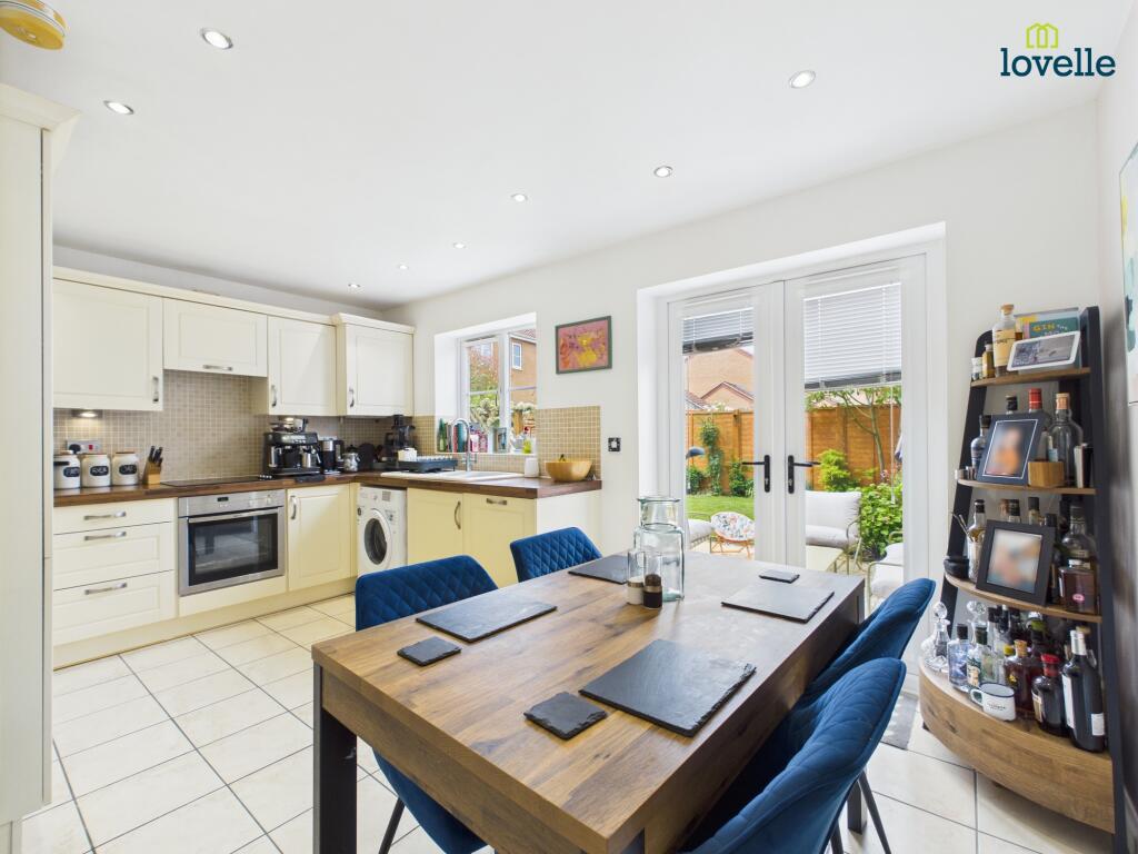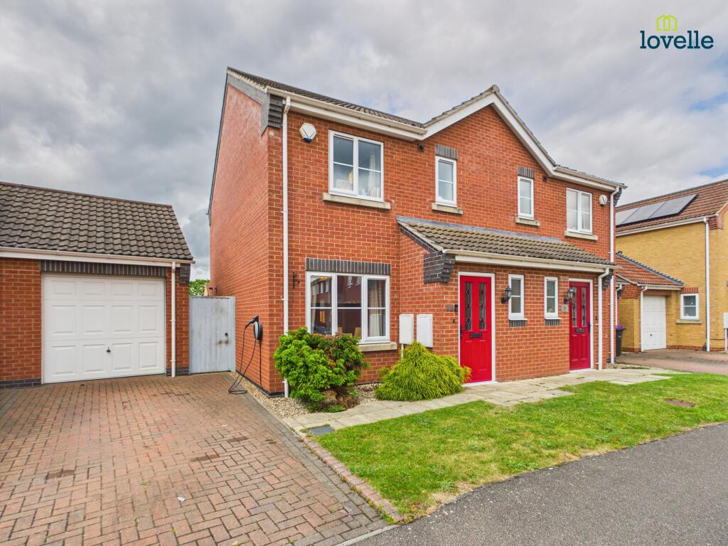 Modern three bedroom semi detached home in a popular village location. Spacious lounge and stylish kitchen diner with French doors to the garden. Enclosed rear garden, driveway and detached garage....