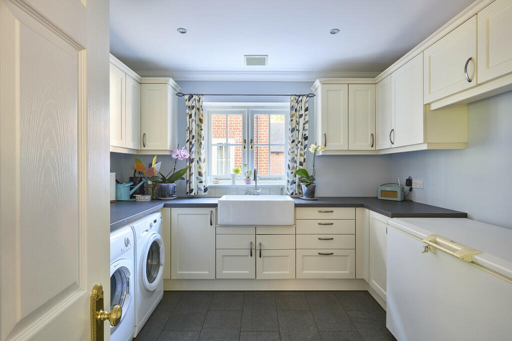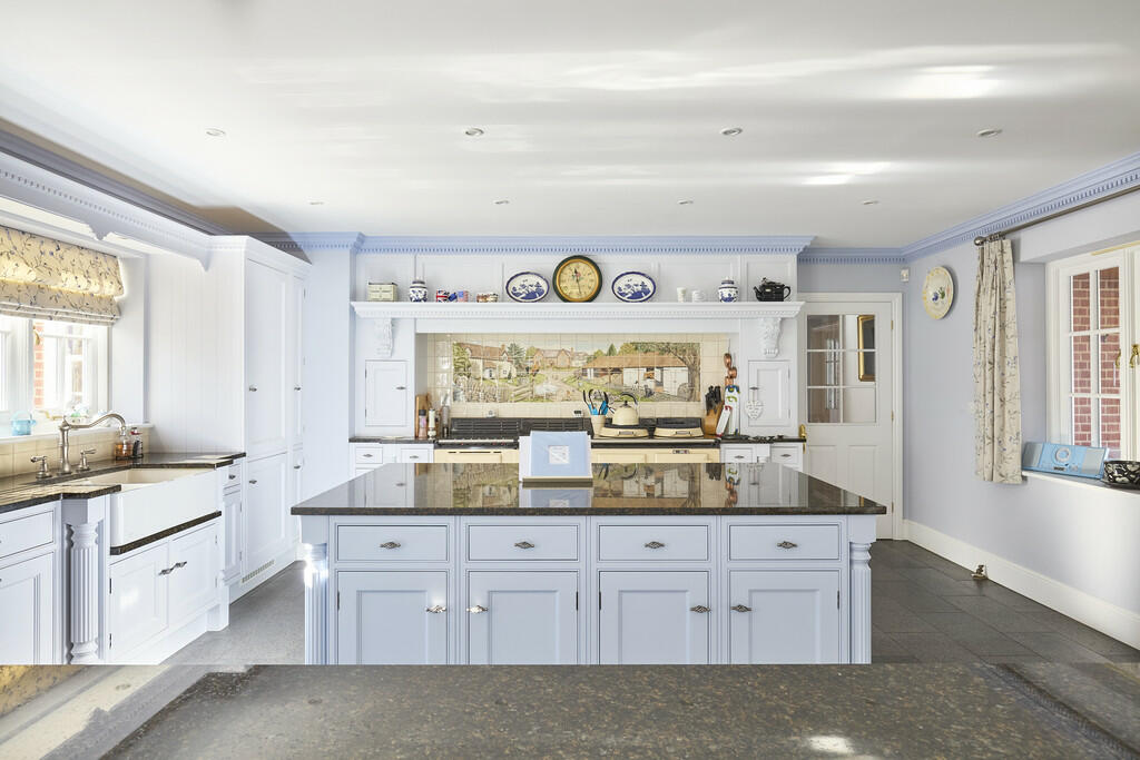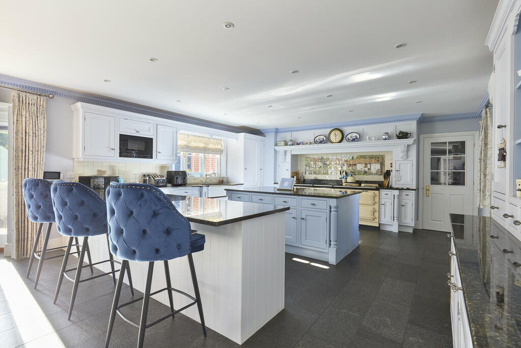 This property in Worlington, Suffolk, presents a substantial six-bedroom, six-bathroom detached family home. The property’s size of 7,896.41 sq ft is considerable, indicating spacious and well-proportioned accommodation. The presented photographs show a high level of interior design and craftsmanship, implying a high standard of construction and recent upgrades. The inclusion of features like a snooker room and multiple bedrooms and bathrooms clearly indicates an elevated level of luxury. The exterior showcases a large garden with mature trees and landscaping, providing ample outdoor space. The property also benefits from what appears to be a considerable private drive, and a multi-car garage block. Its location in the village of Worlington offers a combination of peaceful country living with relative ease of access to amenities and transport. The proximity to schools is another considerable plus point for potential buyers with families. However, without definitive square footage details of comparable nearby properties, the average price per square foot is unavailable, and therefore a direct comparison with regional averages cannot be completed. Ultimately, this property appeals to those seeking spacious, high-quality accommodation in a peaceful yet accessible location within Suffolk’s desirable housing market. While the large square footage provides significant potential, the lack of precise plot size information prevents a full assessment of the value provided per unit of land area.