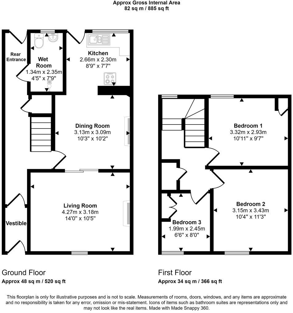 A 3 bedroom mid terraced House he property layout comprises , entrance hall, living room, dining room, kitchen, wet room and rear porch. First floor three bedrooms. two double and one single. The property benefits from double glazing and gas central heating. Externally, there is a c...