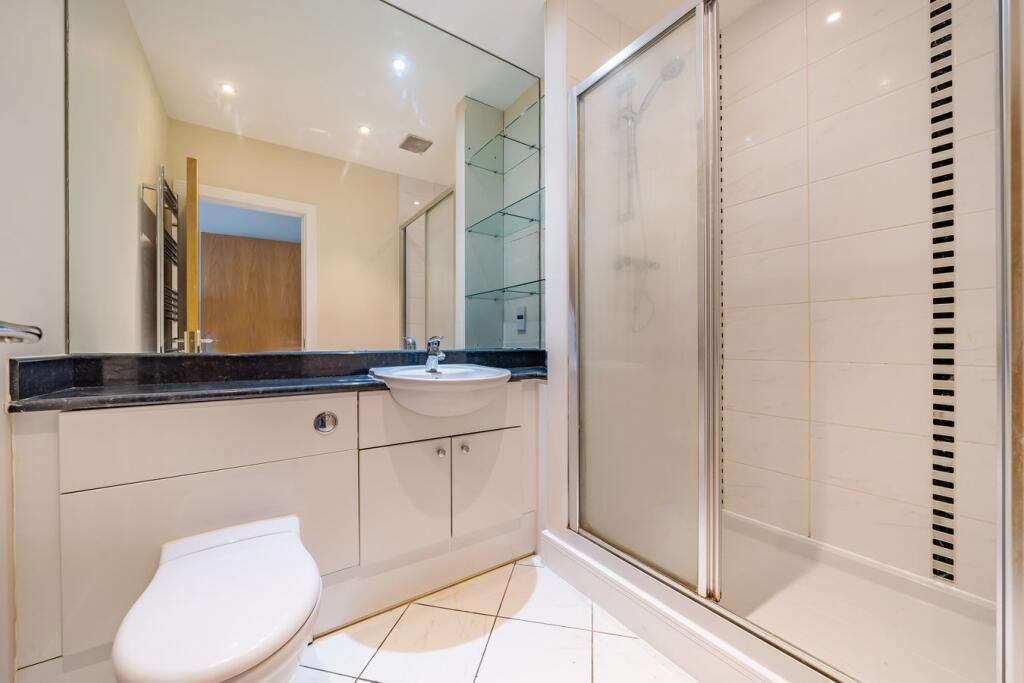 Located on the second floor of the building, the property boasts two double bedrooms both with built-in storage and one with an en-suite. The open plan kitchen/reception room is a massive space perfect to relax or entertain, the fully integrated kitchen units have a sleek hi-spec finish and wo...