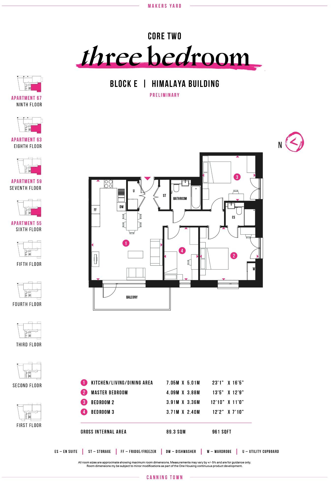 £2,000 cashback available! A stunning three bedroom, 7th floor apartment at Makers Yard in Canning Town. Spacious open plan kitchen, living & dining room . 2 spacious double bedrooms with fitted wardrobes and an en-suite to bedroom 1. Spacious balcony accessible from 2 bedrooms and the living area
