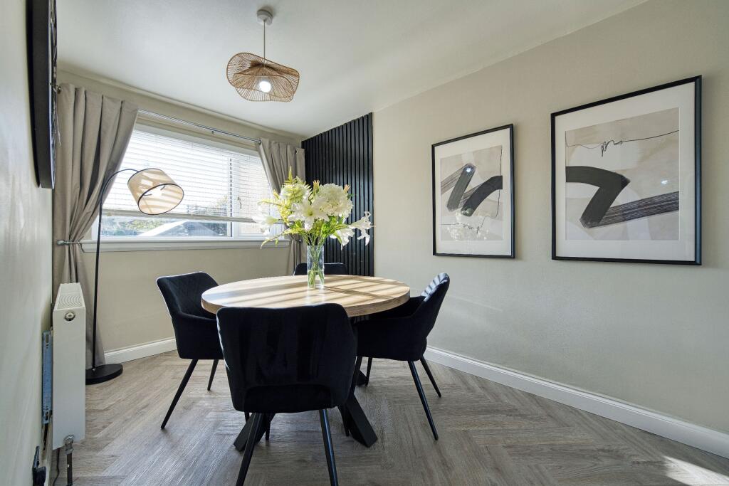 This is a well-presented terraced property in Baillieston, Glasgow. The house has been modernised to a high standard, with a contemporary kitchen and bathroom. The property benefits from front and rear gardens, with the rear garden offering a decked area and patio. The property is located within reasonable distance of local amenities and transportation links. The asking price of £150,000 appears competitive, given the property’s condition, size, and location relative to the local market.
