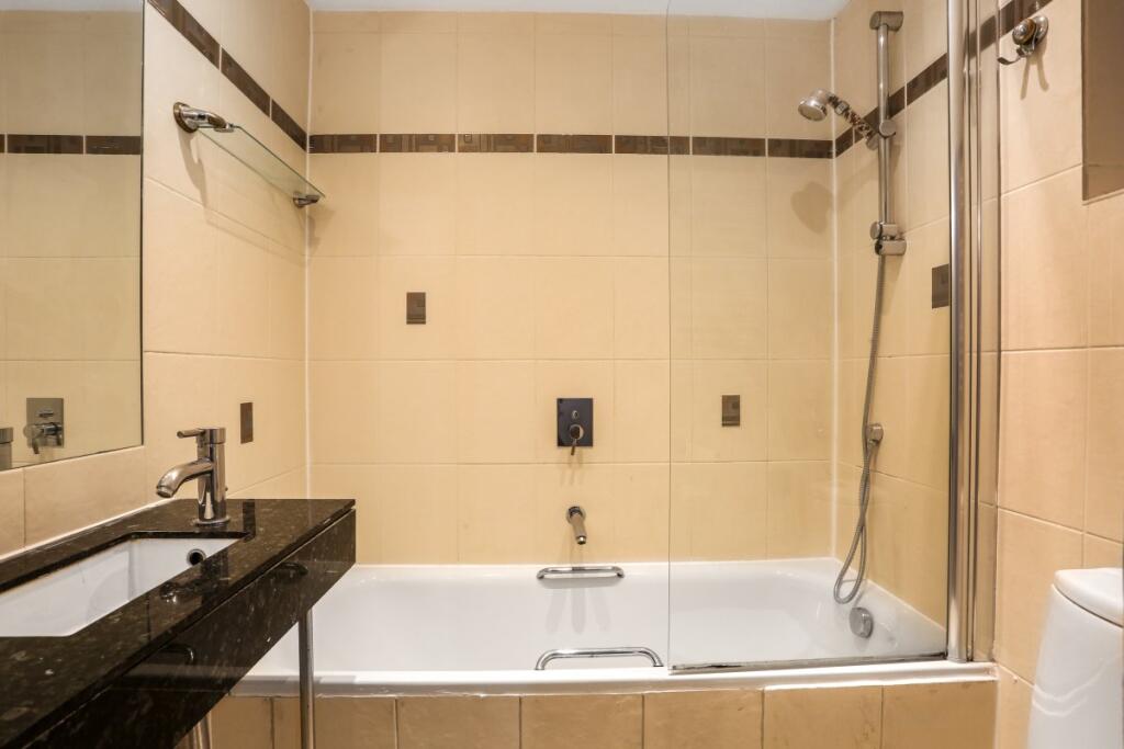 The property is in a portered (24 hours) mansion building with heating and hot water included in the rent. It has two double bedrooms, one single bedroom/study, two bathrooms (one en-suite), and separate kitchen and living room.