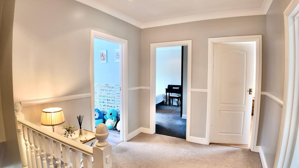 Stunning 4-bed detached house with modern features. Private driveway, integral garage, open-plan kitchen, conservatory, master ensuite, attic cinema room. Perfect family home, act fast!